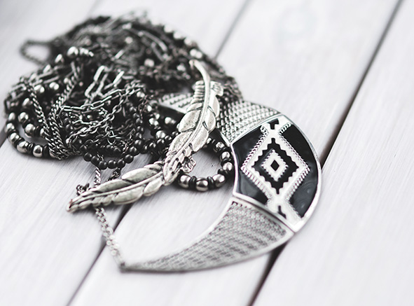 Το ασήμι βέβαια, δεν έλειπε από τον κύκλο μας, καθώς εμφανίστηκε σε περίπλοκες μορφές όπως αιχμές βελών, φτερά και ζώα, καθεμία από τις οποίες συμβολίζει συγκεκριμένες έννοιες που σχετίζονται με την προστασία, τη σοφία και τη σύνδεση με τον φυσικό κόσμο.