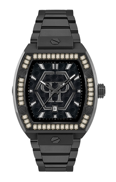 Η κάσα 39 mm επιτυγχάνει την τέλεια ισορροπία μεταξύ εκκεντρικότητας και εκλεπτυσμένης χάρης, ενώ η λαμπερή στεφάνη, πλαισιώνει όμορφα το καντράν. Ταυτόχρονα, οι λεπτεπίλεπτοι ρωμαϊκοί αριθμοί προσδίδουν μια διαχρονική πινελιά, που ενσαρκώνει το πνεύμα της PHILIPP PLEIN.